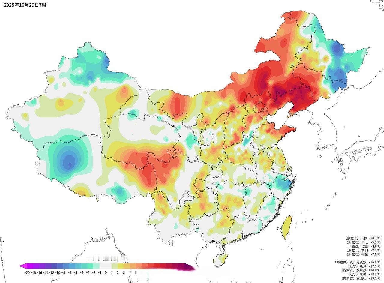 【冷空气离去,东北火速回暖】昨夜今晨冷空气影响迅速结束,暖平流加持下北方大部气温如“弹射”般剧烈回升。特别是东北西部和南部、华北北部今早气温比昨天同一时间飙升10-15度以上,比如沈阳今早7点气温9.1度、比昨天7点-7度飙升16.1度!内蒙古宝国吐国家站气温升幅更是达到了惊人的19.2度,直接从昨天冷得破记录变成大幅偏暖。未来一周影响北方的冷空气节奏都很快,北方气温还将如弹簧般上下起伏,大家要注意气温变化、防止被冷暖空气“带节奏”了。