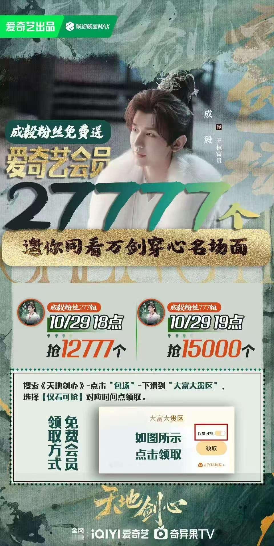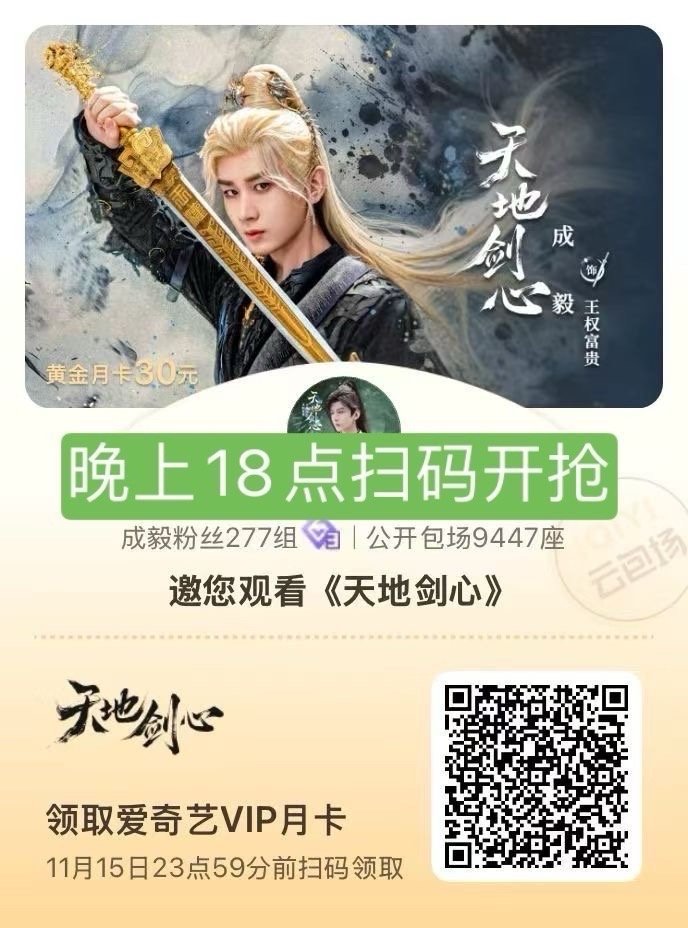 感叹成毅的号召力,刚搜了一下内娱电视剧包场金额,成毅粉丝排名第一和第二名,给你们点赞。[期待]《天地剑心》有你们,是剧集的福气。💚