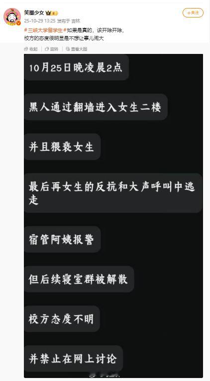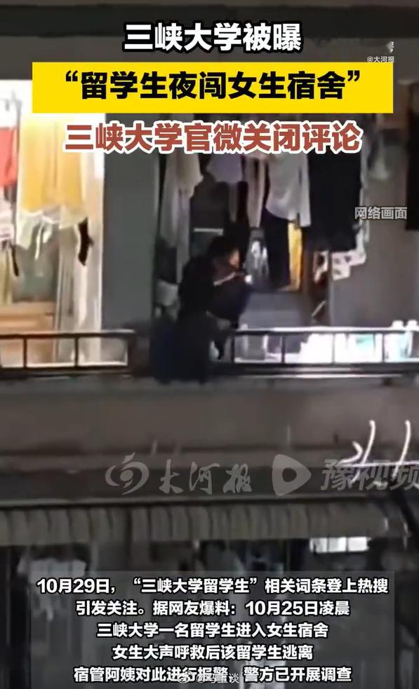 三峡大学官微关闭评论 留学生深夜徒手爬楼闯入女寝 热点观点