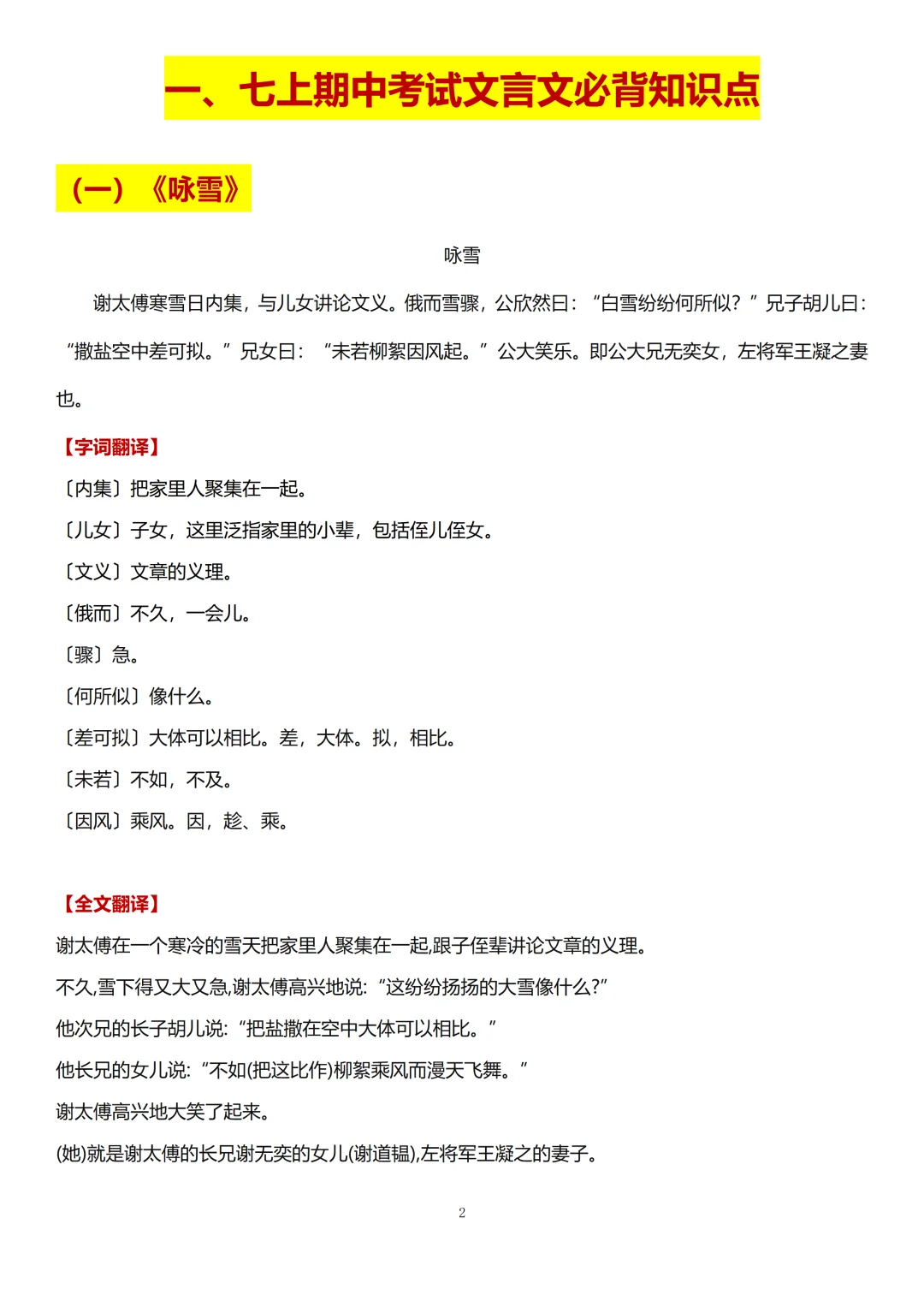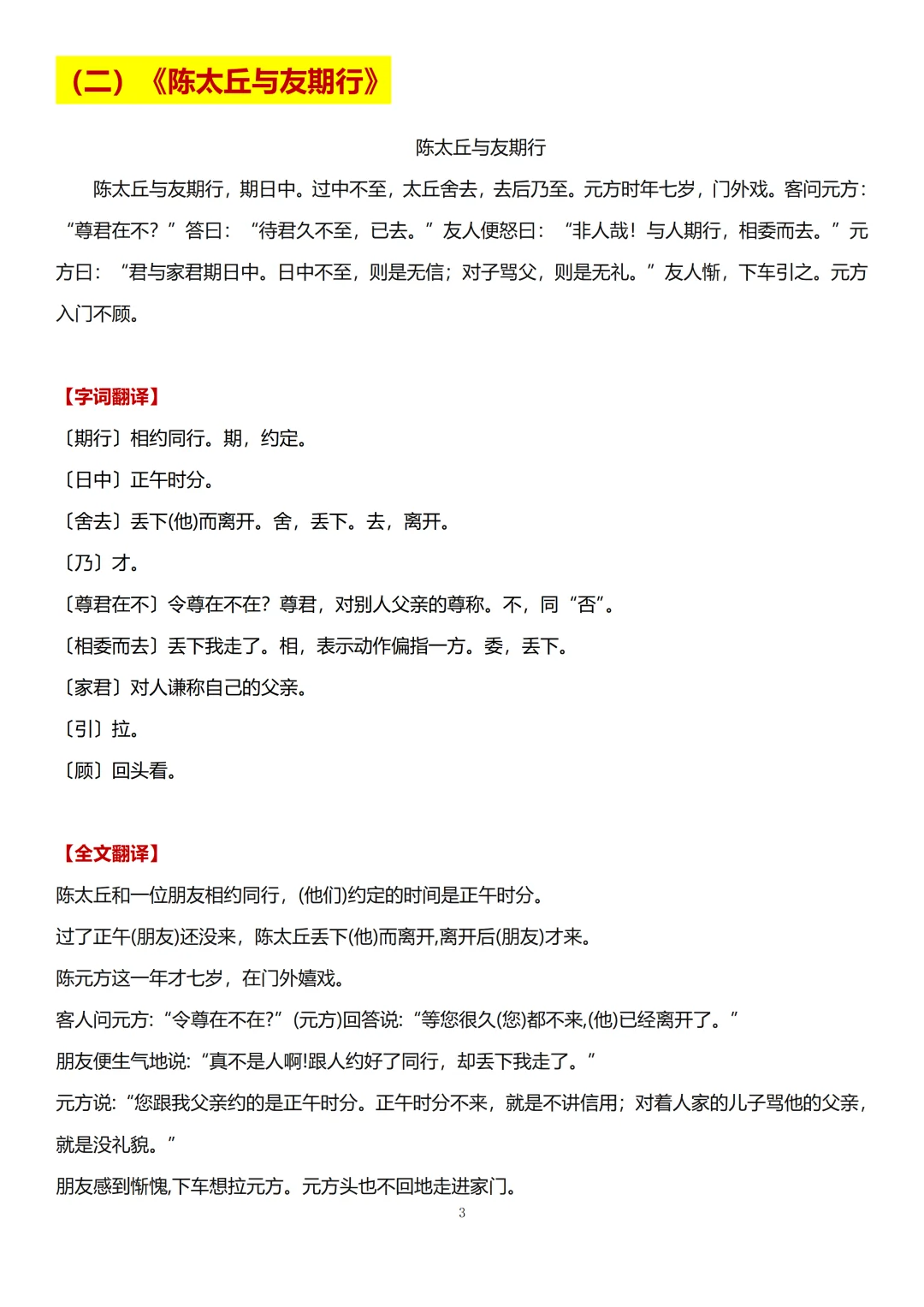 针对七上期中考试的文言文考试范围,我总结了《咏雪》、《陈太丘与友期行》、《论语》十二章的重点字词和句子翻译。像期行的“期”:约定。顾:回头看。还有“陈太丘与友期行,期日中,过中不至,太丘舍去,去后乃至”的翻译等都是高频考题,大家需要重点记忆。