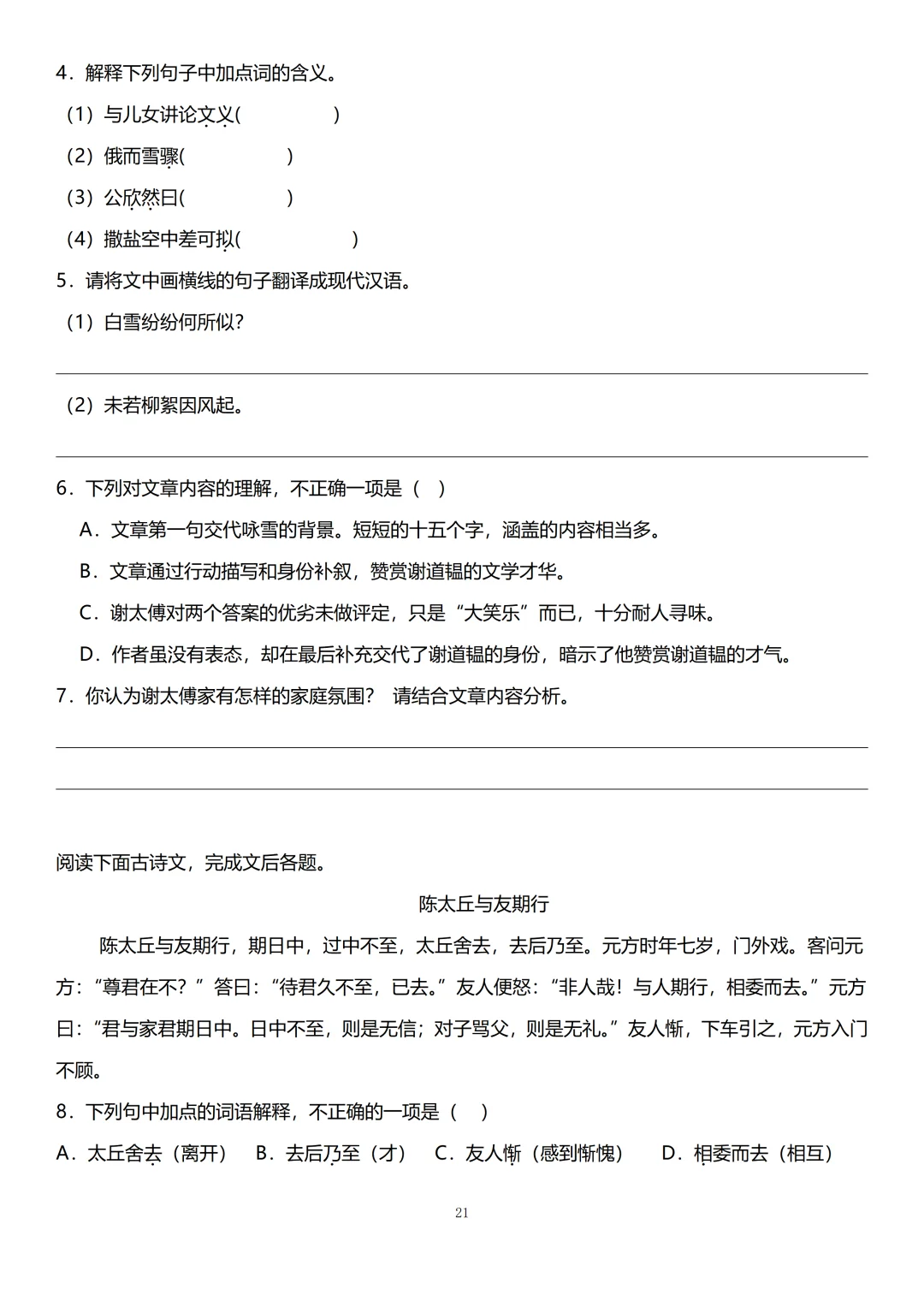为了帮助大家提高期中考试文言文板块的分数,我精选了近 3 年各地期中考试的14篇文言文真题,包括课内文言文、课内外对比阅读以及课外文言文阅读,提前练好,无论考试考到哪种类型都不用慌。 做完对照答案批改,哪里弱补哪里,效率超高!