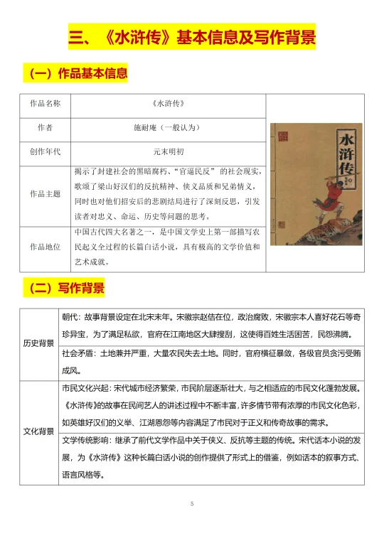 首先要了解《艾青诗选》和《水浒传》的作品简介、作者简介以及写作背景。这些都有可能会成为选择题的选项,以文学常识的形式考察你。