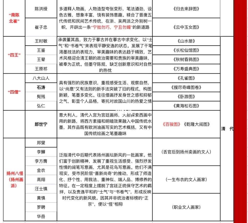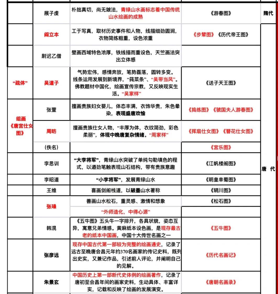 从史前美术到清代美术。 近现代的干货资料在上两个笔记~ 除了要看精讲笔记,还需要看总结好的时间轴,重点,关键节点关键代表人物,去加深重点高频的印象,因为想把一本书都吃透没那么容易,临近考试就只能有取有舍。