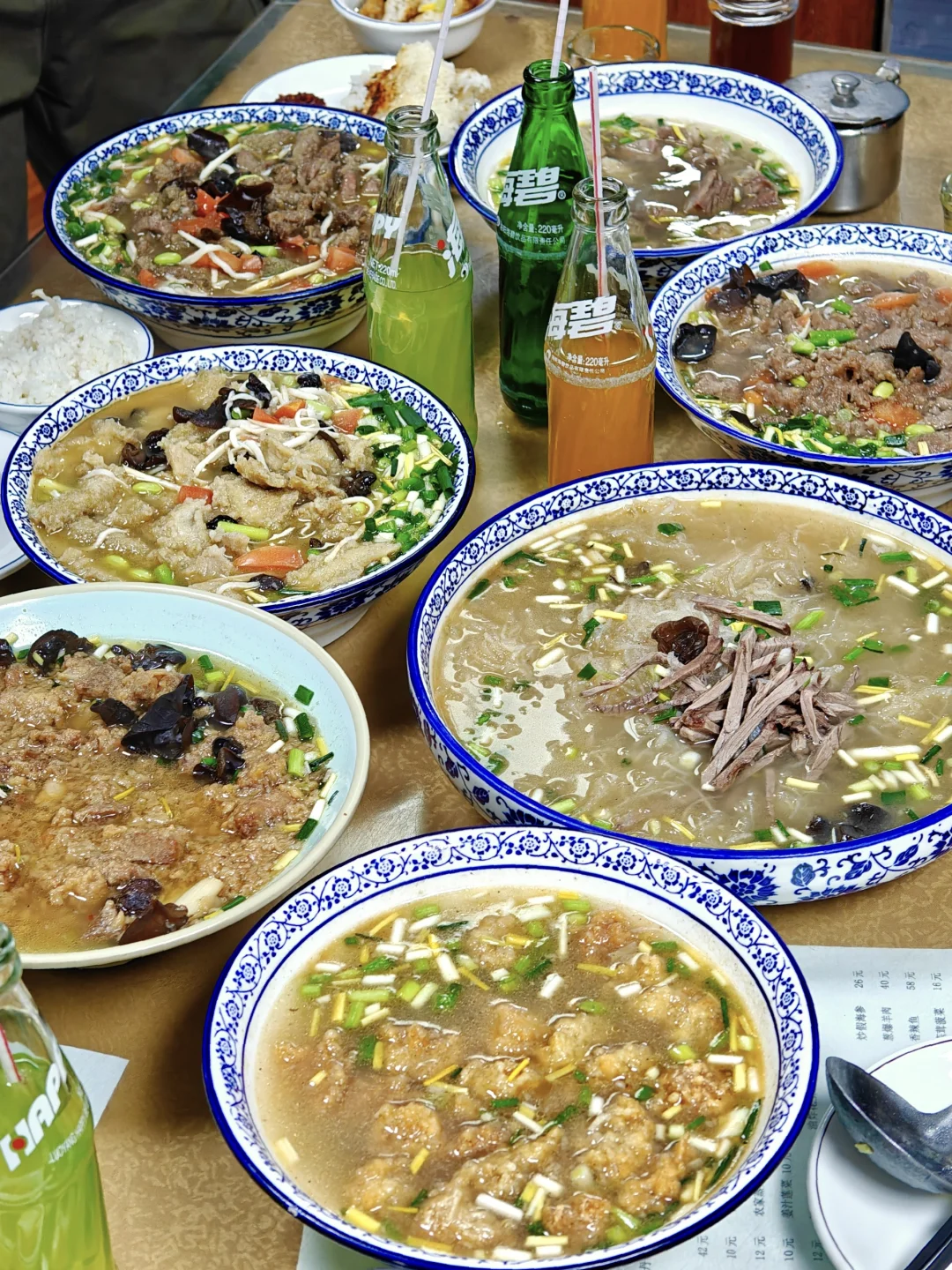 🍜水席:汤汤水水味道超足,酸辣暖胃好吃不贵!必点燕菜、连汤肉片、丸子、牛肚(推荐 顺峰水席,饭点要排队,充满烟火热火朝天的全是本地人在吃)