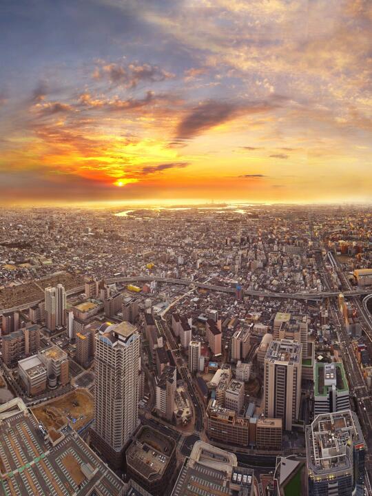 300米高空360度俯瞰整个大阪,傍晚时分日落晚霞美成画,共3个楼层,有空中回廊、空中花园、餐厅以及文创商店,柯南中和叶和平次的告白成功之地!