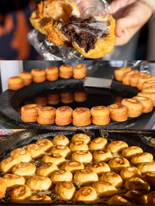 很像北方的油炸糕,糯米做的外皮,除了豆沙甜口还有肉馅的,5块一个,现炸出锅很香!胖墩墩的金灿灿的很受欢迎,人手一个边走边吃。📍推荐:冯记油墩(好多家卖油墩的只有他家排长长的队)