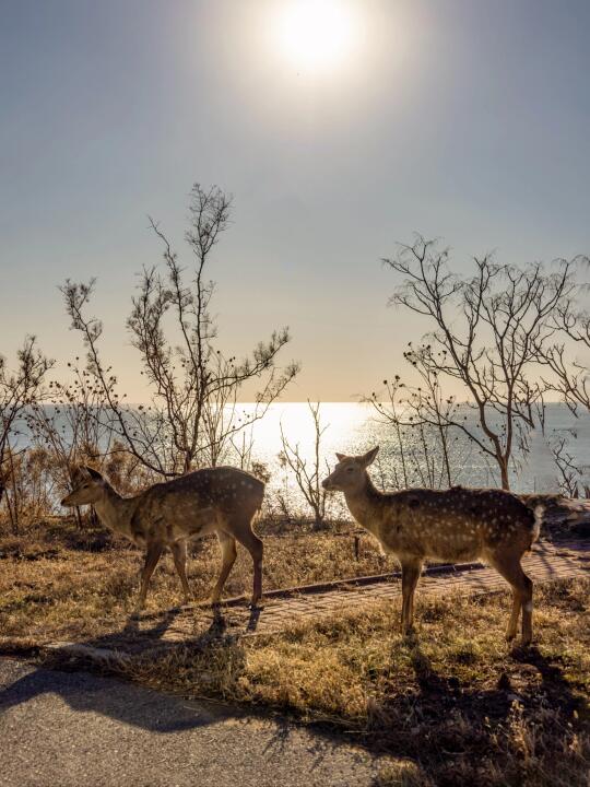 银沙滩除了喂海鸥,还有看散养的可爱梅花鹿