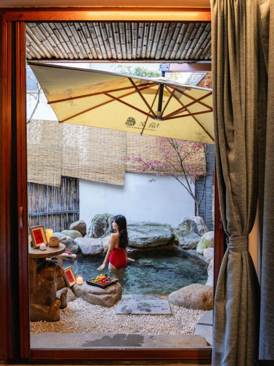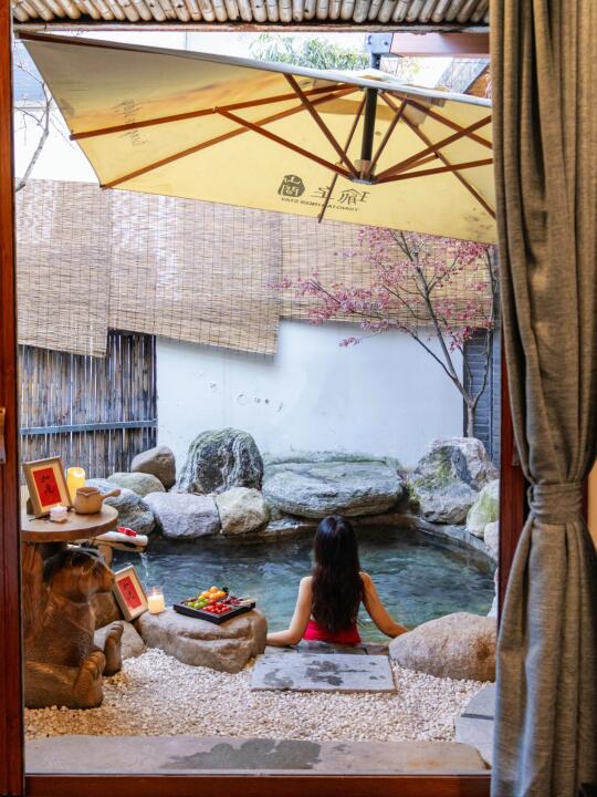 冬天住宿要选一家有汤泉的住。