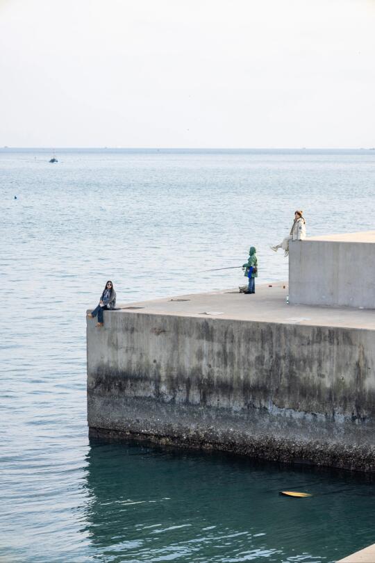 东港靠近大连港,海水很蓝,每天早晨10 :50都有很多人等待看大型轮渡经过。