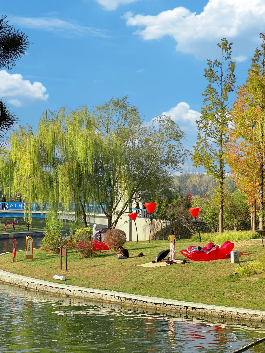 草地上躺着晒太阳又大又免费!光在这里就可以溜达一整天!跑步、划船、放风筝、野餐位置就在泡泡玛特城堡的对面,在草地上一躺,不要太惬意😌