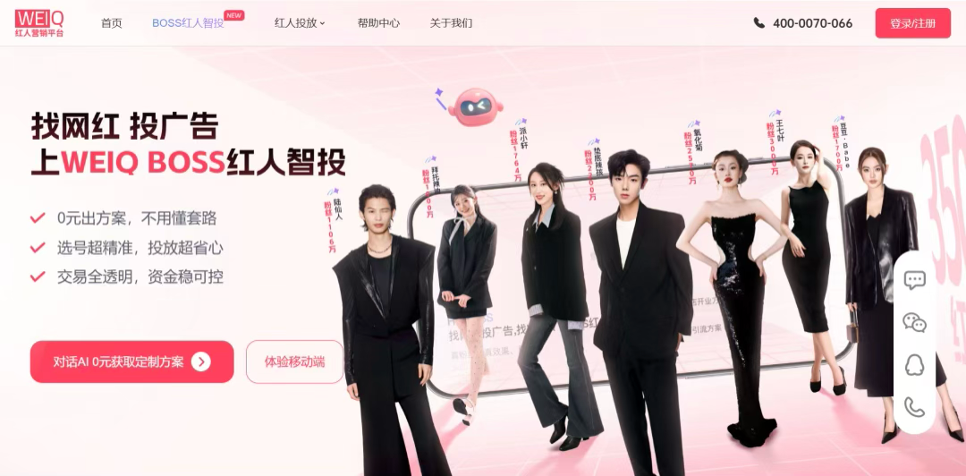 值得一提的是,9月WEIQBOSS红人智投的上线标志着红人营销由“经验驱动”迈向“数据智能”。该产品基于Deepseek大模型,对平台350万红人资源进行多维标签化处理,过去需要专业团队数天完成的投放方案,如今可在数十秒由AI快速生成。此次升级的核心在于将天下秀十余年积累的营销数据与AI能力深度融合,把复杂的投放决策转化为可复制、可标准化的服务形态。围绕“真粉丝、真效率、真效果”,升级后的WEIQ构建了三层能力:AI自动生成投放方案,涵盖平台策略、达人匹配、预算分配;智能筛选,精准定位目标账号;全流程透明化监测,实现“投前—投中—投后”闭环。三层能力的下沉,使平台服务的20万中小商家获得更加普惠、可用、可衡量的营销工具。