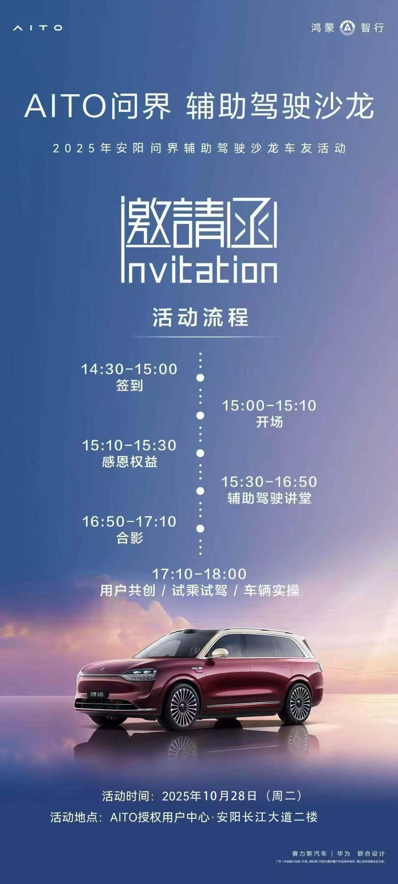 🌟同问界阅山海 [烟花]豫智同行 驾享生活 🚘共听辅助驾驶讲堂 探索辅助驾驶奥秘 ⏰时间:10月28日 14:30 🕹地点:AITO授权用户中心·安阳长江大道 [礼物]辅助驾驶讲堂活动开启啦[烟花] ☎报名电话:0372-3730123 诚邀您一起探讨辅助驾驶之旅🌹🌹