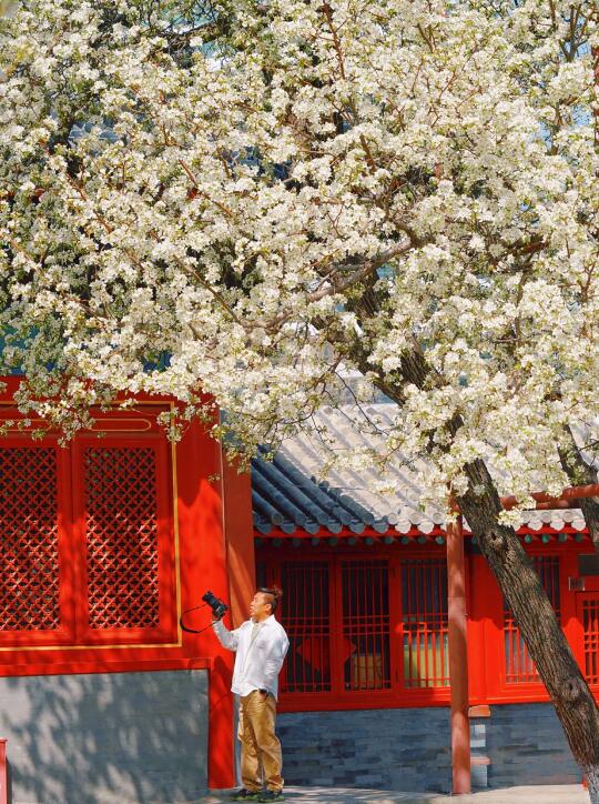 👔服装:白色衣服配红墙和梨花最为搭配出片