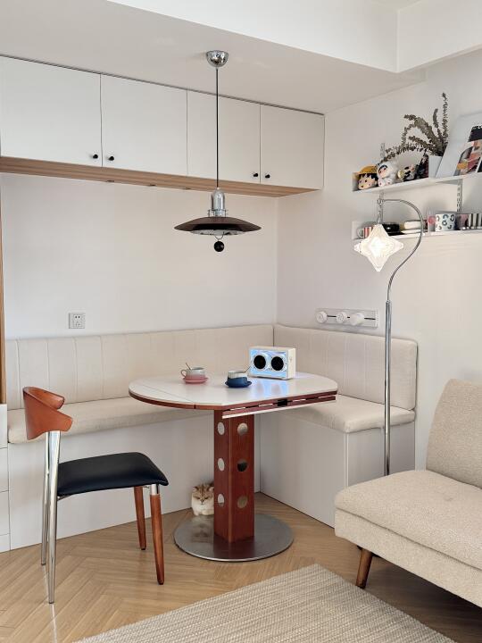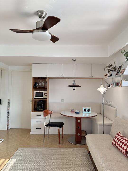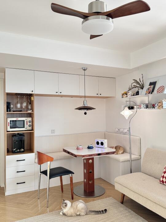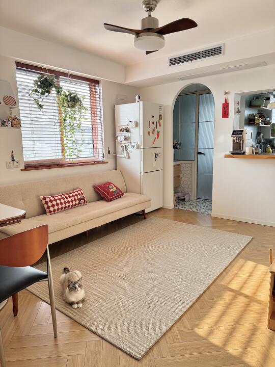 朋友来我家,说感觉我家很大, 是不是有100平? 我跟她说只有65平, 她说原来这么小。 📌坐标上海,两室一厅,一厨一卫 📍客餐厅一体,开间4.5m*3.3m ✨沙发2.2m,餐桌1.1m,地毯1.6*2.4m