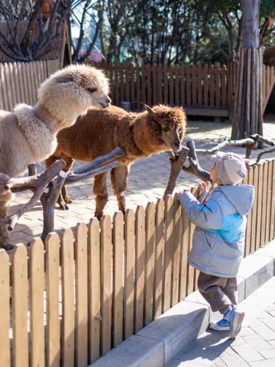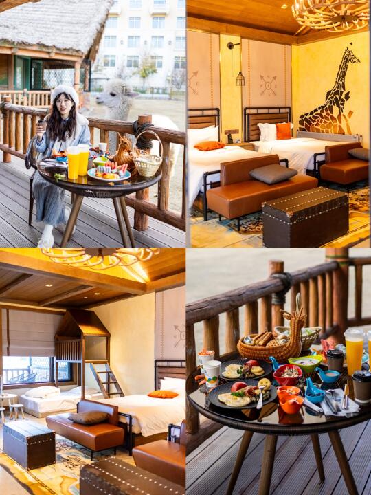 🐏酒店有多种亲子房可长颈鹿别墅冬天可以近距离接触羊驼、梅花鹿、麋鹿等萌宠
