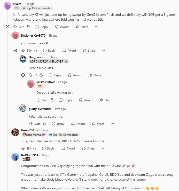 遗憾的是KT在半决赛只会被GEN横扫,我们注定看不到打满五局的通讯社大战总决赛,也看不到Bdd捧起他的首座全球总决赛奖杯了。