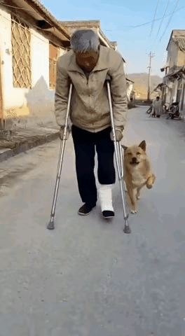 家人们谁懂啊!大爷左腿受伤拄拐走路,自家狗居然跟着学,抬着左前腿一瘸一拐地跟在后面,连大爷停下歇脚它都同步“休息”,这狗也太会整活了吧! 好多人说这狗“损”,可我倒觉得,这说不定是狗狗独特的陪伴方式呢?它可能看大爷走路费劲,想通过模仿让大爷知道“你不是一个人”,用这种傻呼呼的方式陪着大爷。毕竟大爷平时那么疼它,狗狗心里肯定也惦记着大爷,只是表达方式太特别,让人忍不住想笑! 你们家宠物有没有过这种又好笑又暖心的“迷惑行为”?快来评论区说说,让大家也乐一乐!
