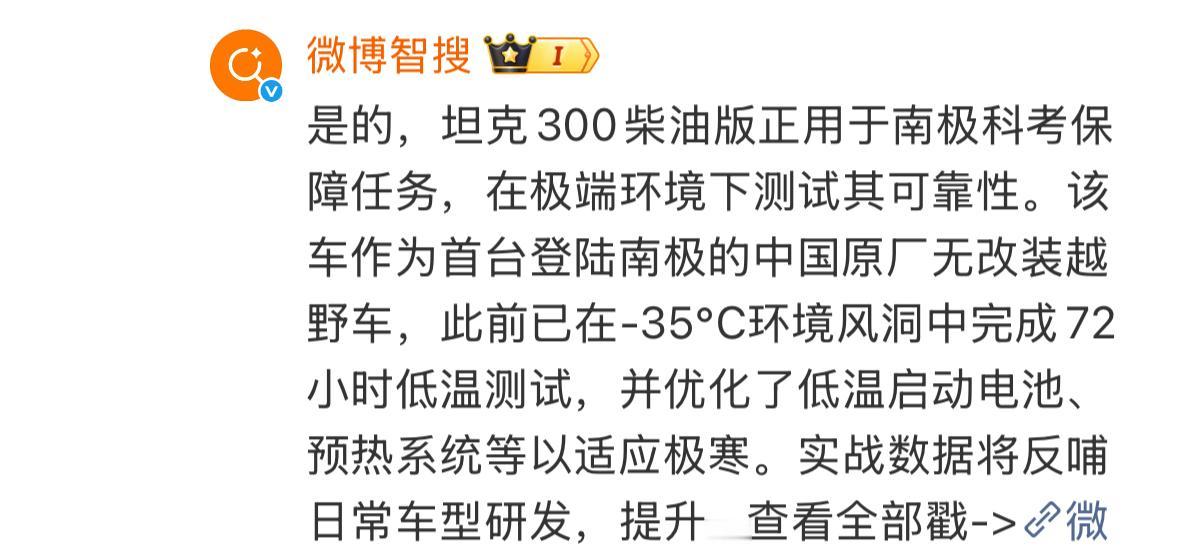 好家伙,漠河测评已经满足不了长城了,现在直接去南极测评可还行??但是作为一个消费者,我是非常支持各大车企在安全方面无限内卷。 长城在越野界真的功不可没啊,干实事,不弄虚作假。我真的永远对魏总有好感滤镜【来自懂车帝车友圈】