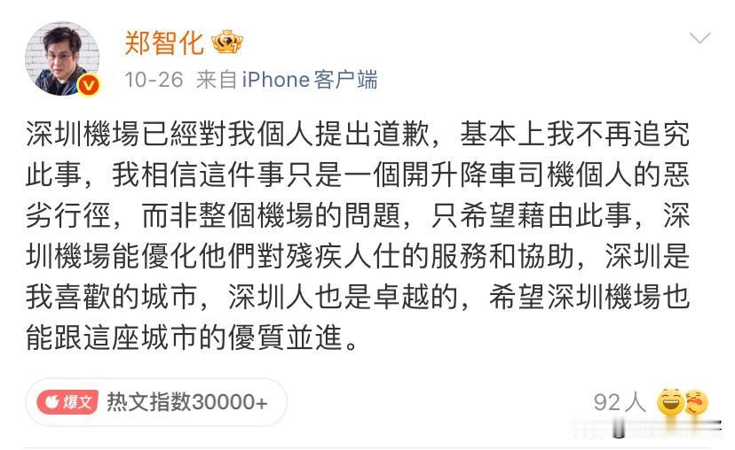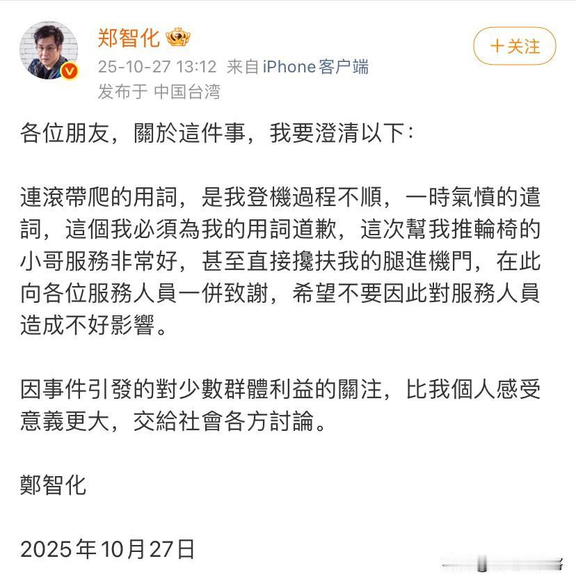 年度最讽刺反转!郑智化一句 “连滚带爬” 炸翻全网,结果监控曝光,脸打得比机场广播还响! 咱先看看这场闹剧有多离谱:轮椅歌手控诉机场 “没人性”,说自己登机时被折腾得 “连滚带爬”,全网瞬间心疼这位身残志坚的老牌偶像,唾沫星子差点把深圳机场淹没。可万万没想到,监控一放出来,网友直接看傻了 —— 哪有什么 “虐待”?分明是两位小哥像抬自家长辈似的,全程弯腰扶着他、托着他的腿,小心翼翼跨过机门,贴身守护了整整两分钟! 合着人家掏心掏肺当 “人梯”,转头就被反咬一口扣上 “没人性” 的帽子?郑智化你摸着良心说,这两位拿着几千块工资的基层工作人员,到底哪儿对不起你? 更让人膈应的是,所谓 “25 厘米高差” 本就是民航安全规范,飞机装卸货物时机身会晃动,留间距是怕刮碰,这是保障所有旅客安全的基本操作。你作为常年坐轮椅的特殊旅客,难道连这点常识都不懂?非要用 “连滚带爬” 这种煽动性词汇博同情,把别人的真心付出踩在脚下,这波操作比机场的无障碍坡道还 “滑”! 最寒心的是那两位小哥,镜头里他们全程面带耐心,生怕碰到你半分,结果换回来的是全网谩骂。要是没有监控兜底,这俩年轻人可能要丢工作、背骂名,以后谁还敢真心实意帮特殊旅客? 公众人物的话语权不是让你颠倒黑白的 “武器”!你想吐槽无障碍设施不完善,没人拦着,但血口喷人伤害无辜基层工作者,就是没良心!这场风波哪里是维权,分明是仗着自己的名气,把舆论当枪使,把普通人的尊严当垫脚石!
