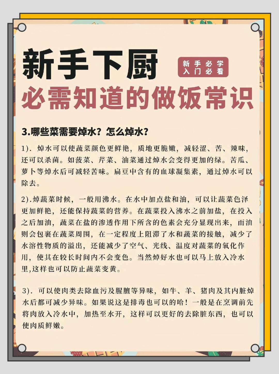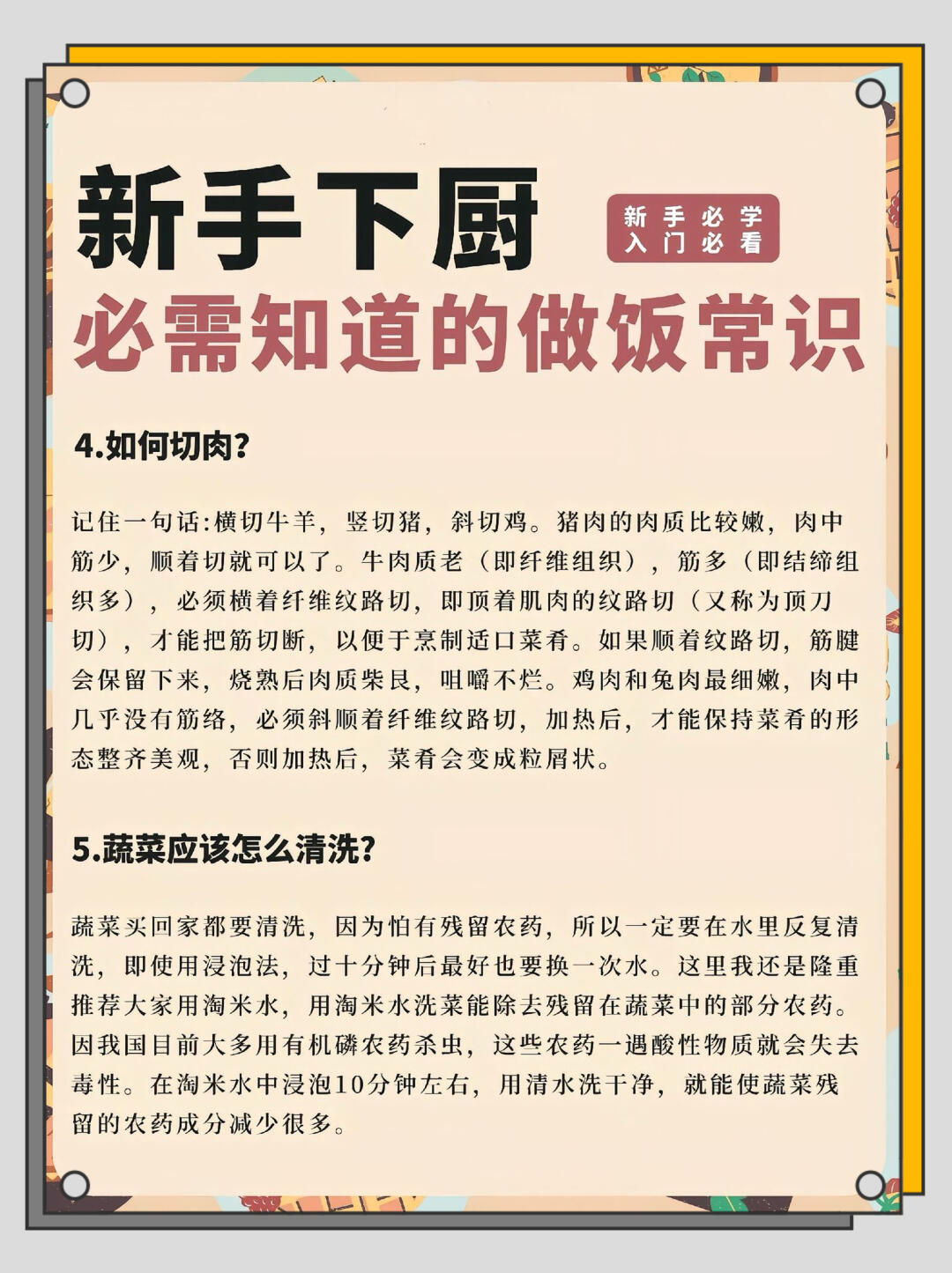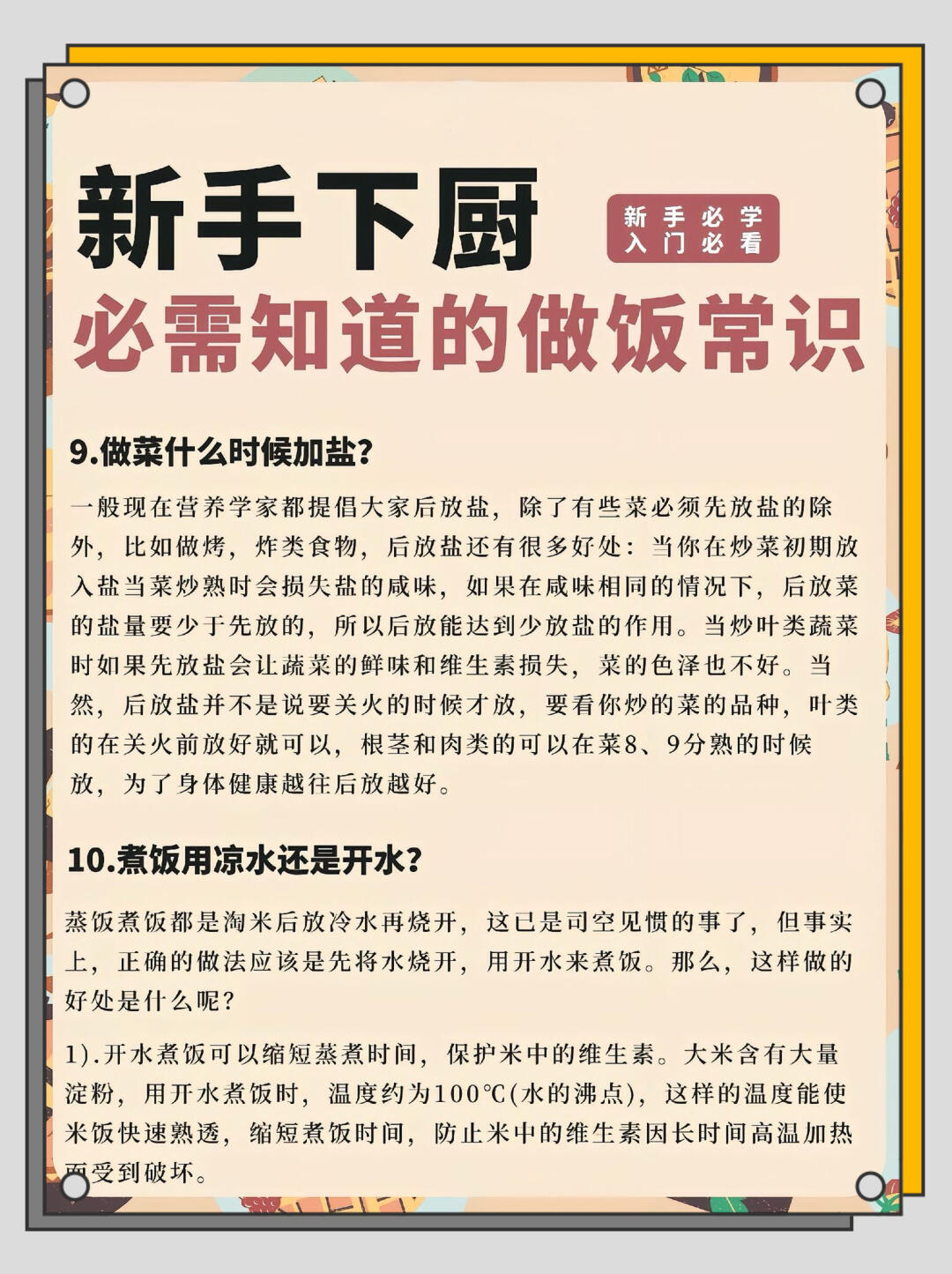 刚学做饭的宝子们是不是手忙脚乱,不知道从哪儿开始?别慌!今天就给大家分享一些超有用的新手做饭常识,轻松迈出厨艺第一步~