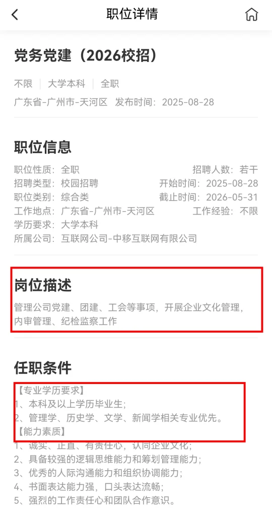 ❗️秋招已经正式开启,央国企单位开始逐渐增多 ✅中国移动校园招聘开始啦!本次移动岗位还未全部开放完毕,目前仅开启部分省公司和下属企业。 ✅新闻、中文、马理论同学可投递党建宣传、综合管理层岗位。 ❗️九月份将逐步开启大量央国企单位,同学们别忘记投递奥~
