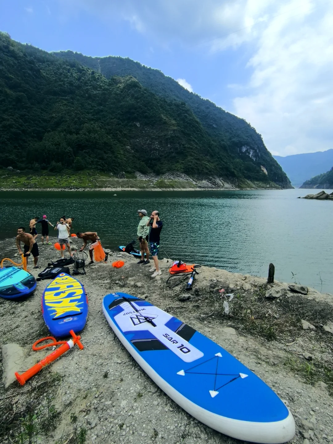 10:00 成都出发→11:30 天官庙搭天幕→玩桨板+冰镇西瓜