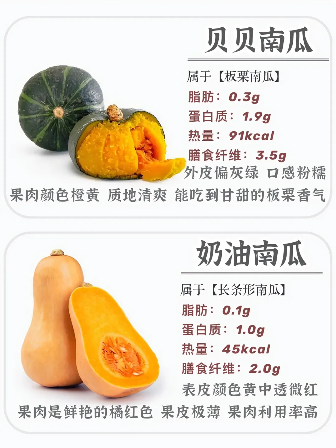 宝子们👋,南瓜作为餐桌上的常客,种类可不少呢!今天就带大家盘一盘常见南瓜的区别与口感~