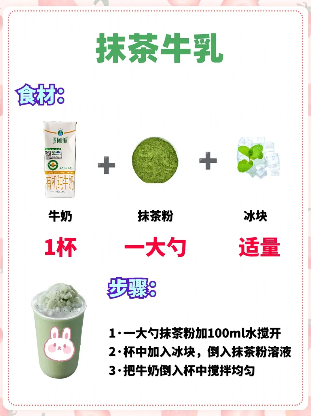抹茶控尖叫!茶香微苦中和牛奶甜腻,加冰摇匀秒变京都风~建议用茶筅打更绵密哦!