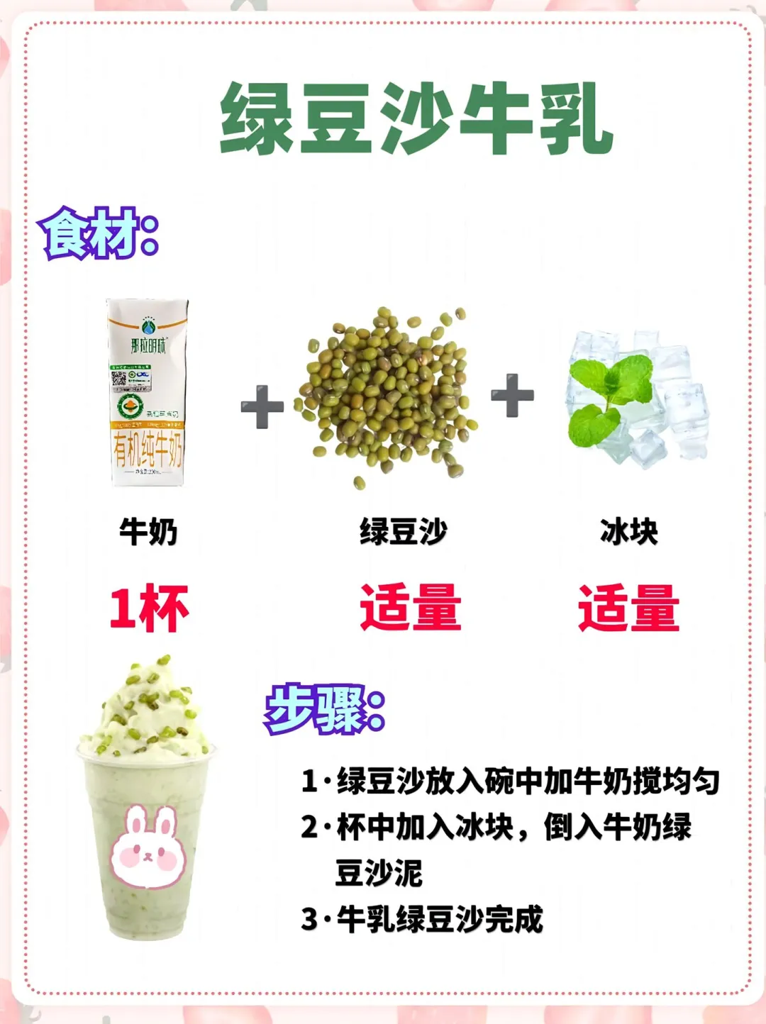 消暑神器!绿豆沙加牛奶搅成绵绵冰沙感,清甜解腻,喝完想原地开奶茶店!