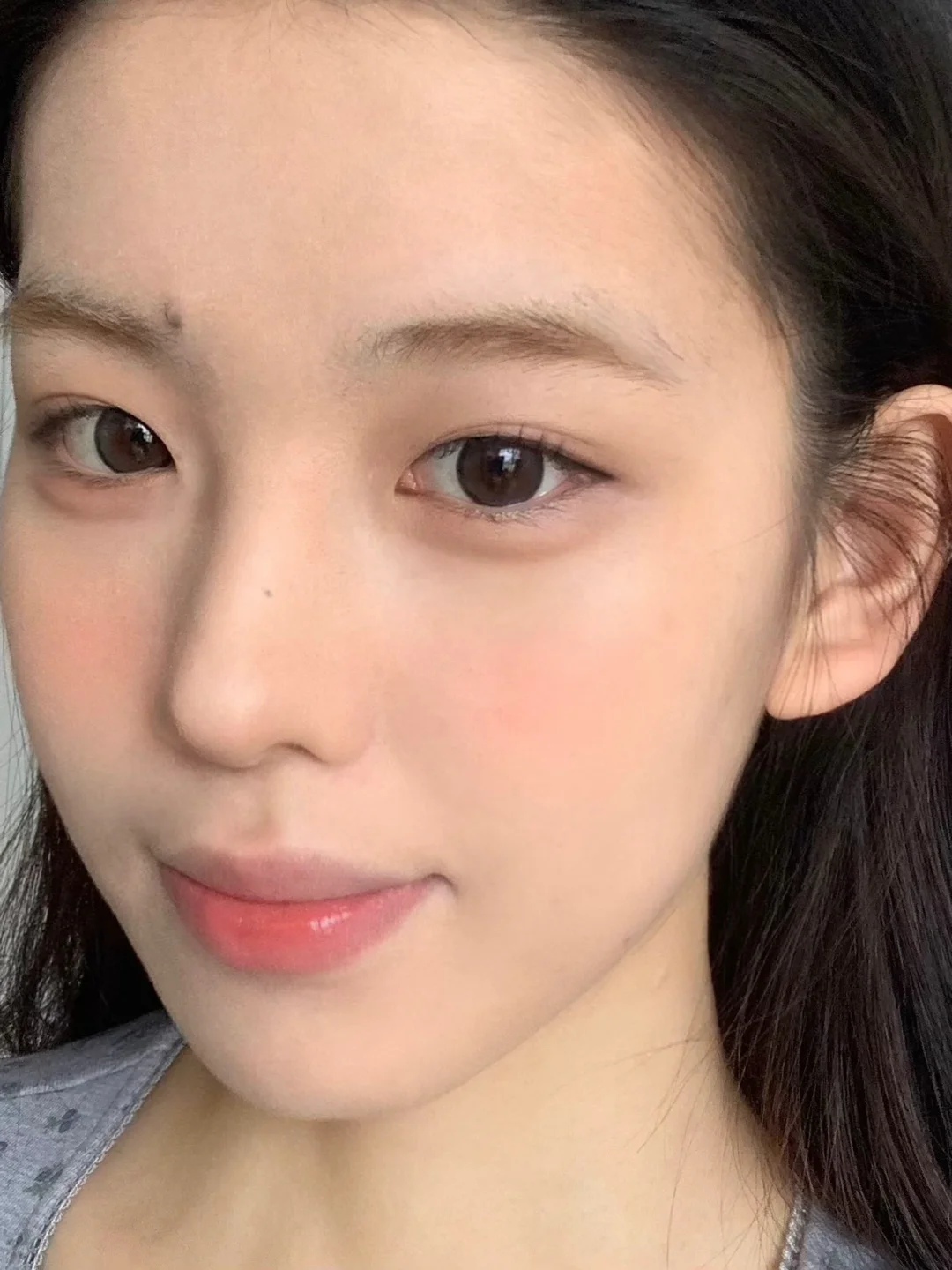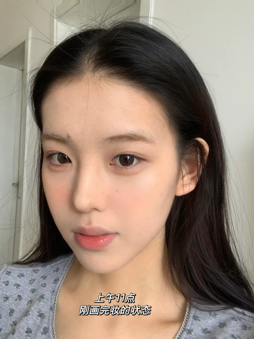 全脸上完是那种高级的薄雾妆感,保留了肌肤原生质感,妥妥妈生好皮即视感,特别适合用来化这种韩系的妆容,怼脸也看不出粉感!!