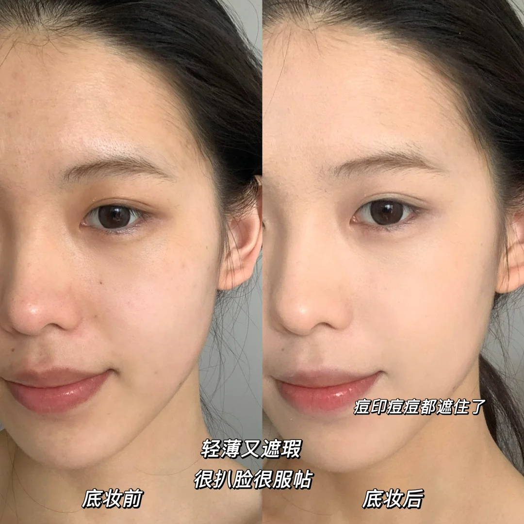 我平时素颜的时候脸上会有一些痘印、黑眼圈,基本薄薄一层就感觉瑕疵直接隐形了,就像韩女御用化妆师精修了一小时一样清透无瑕,咔咔出片!!