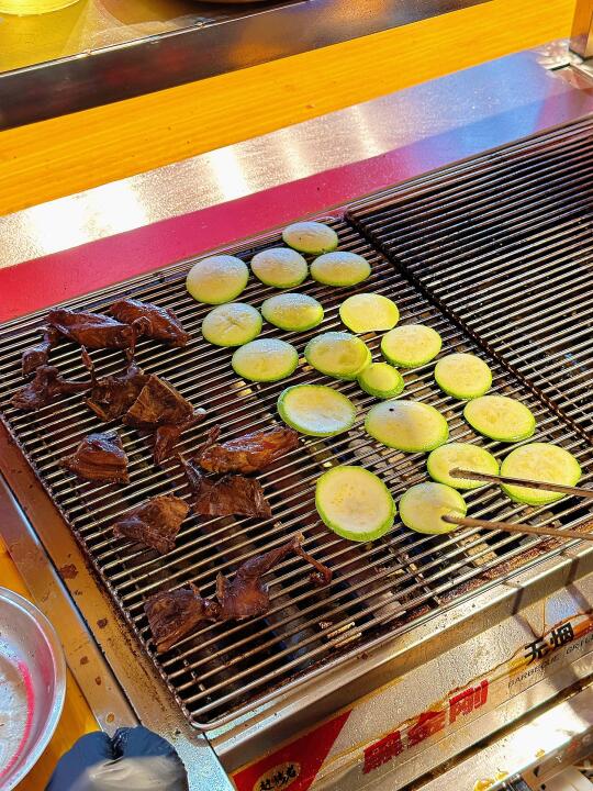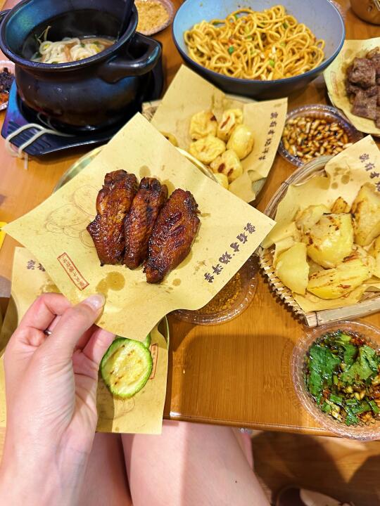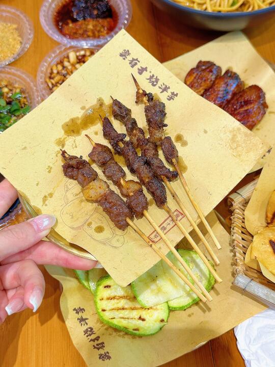 🫘包浆豆腐在炭火炙烤下,表皮迅速鼓起,变得金黄微焦,用筷子轻轻一夹蘸上特制的干碟辣椒面或 湿蘸水,外焦里嫩,豆香四溢,微微爆浆的口感太上头了!