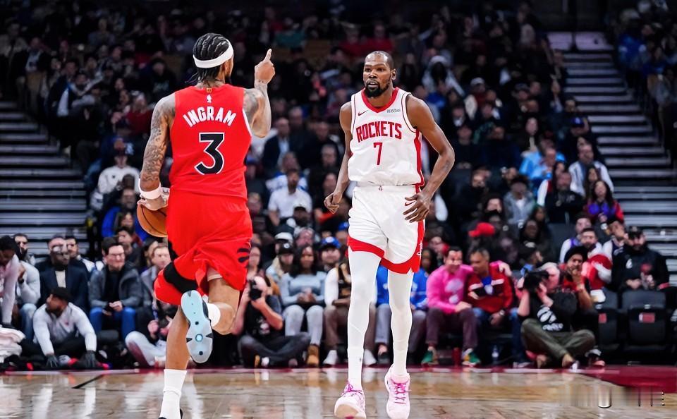 火箭,好起来了? 本场对猛龙可以看出乌度卡还是十分信任“五大”阵容的,让他们处理决胜时刻。“五大”本场也终于发挥出了乌度卡期待的表现,篮板和禁区完爆了猛龙。 “五大”的问题一直是防三分,不仅是今天的猛龙,开季到现在所有球队都是利用三分球试图瓦解火箭“五大”阵容,基本属于“孤注一掷”,全看命中率。 “大小杜兰特对决”,莺歌也体验了一把以前杜兰特的“苦”,像这种一整场张弓搭箭、近乎弹无虚发、手起刀落,回头一看与胜负无关的比赛,老杜以往不知道打了多少场!