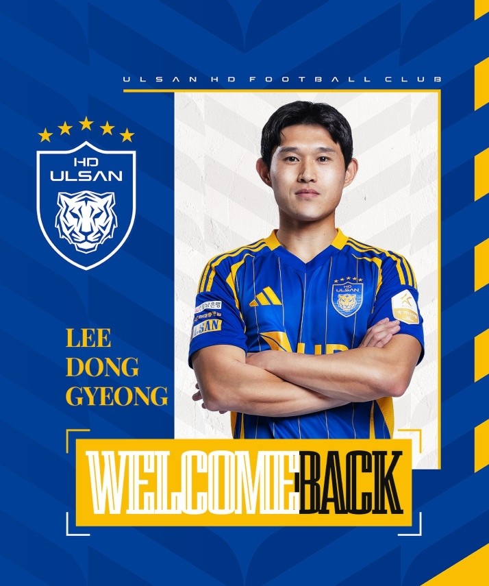 李东炅现年28岁,司职中场,他于去年4月离开蔚山HD服役,在此期间他效力于金泉尚武俱乐部。蔚山HD今天官方宣布,李东炅结束兵役归队。