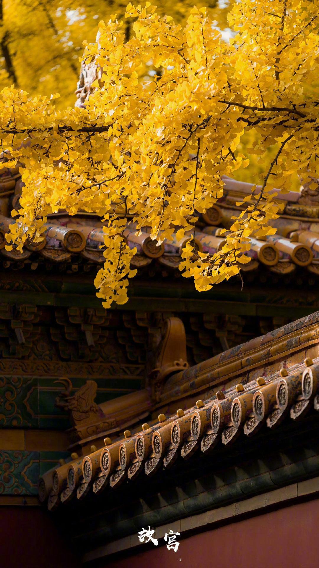 【这里是北京】 一树银杏遮故宫 片片金黄墙更红
