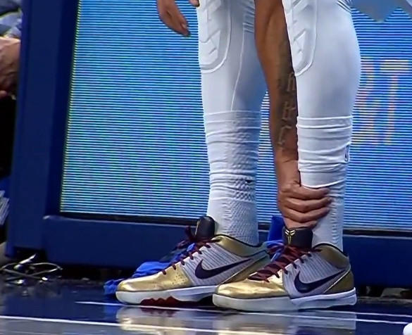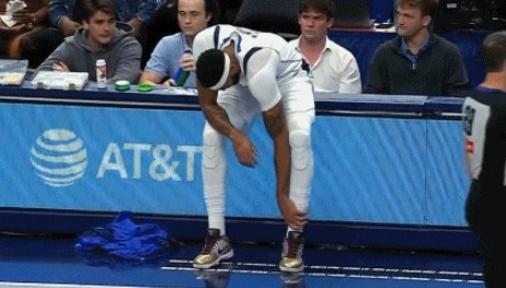 首节中段,浓眉戴维斯落地踩到对方脚上疑似崴伤,返回更衣室接受治疗。