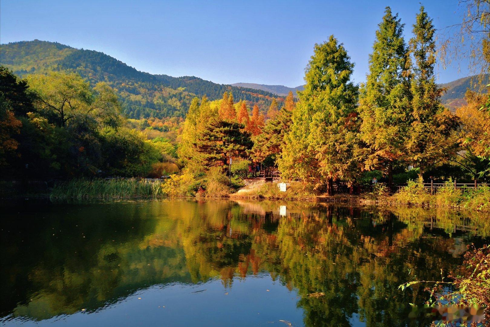 【深秋时节】🍂🍁国家植物园樱桃沟区域有水杉林形成的小型湖泊,这些小巧的水域与