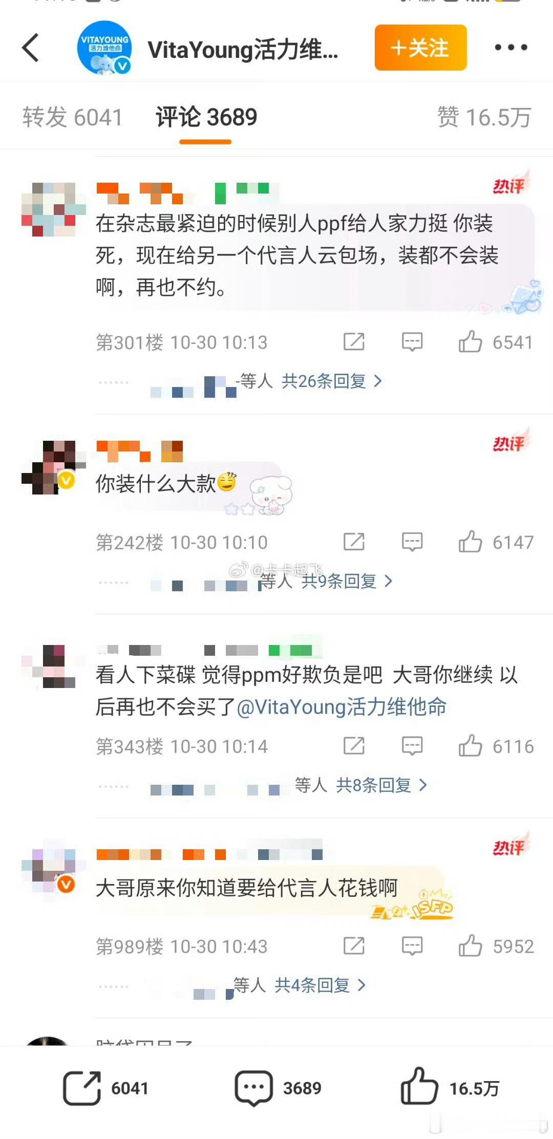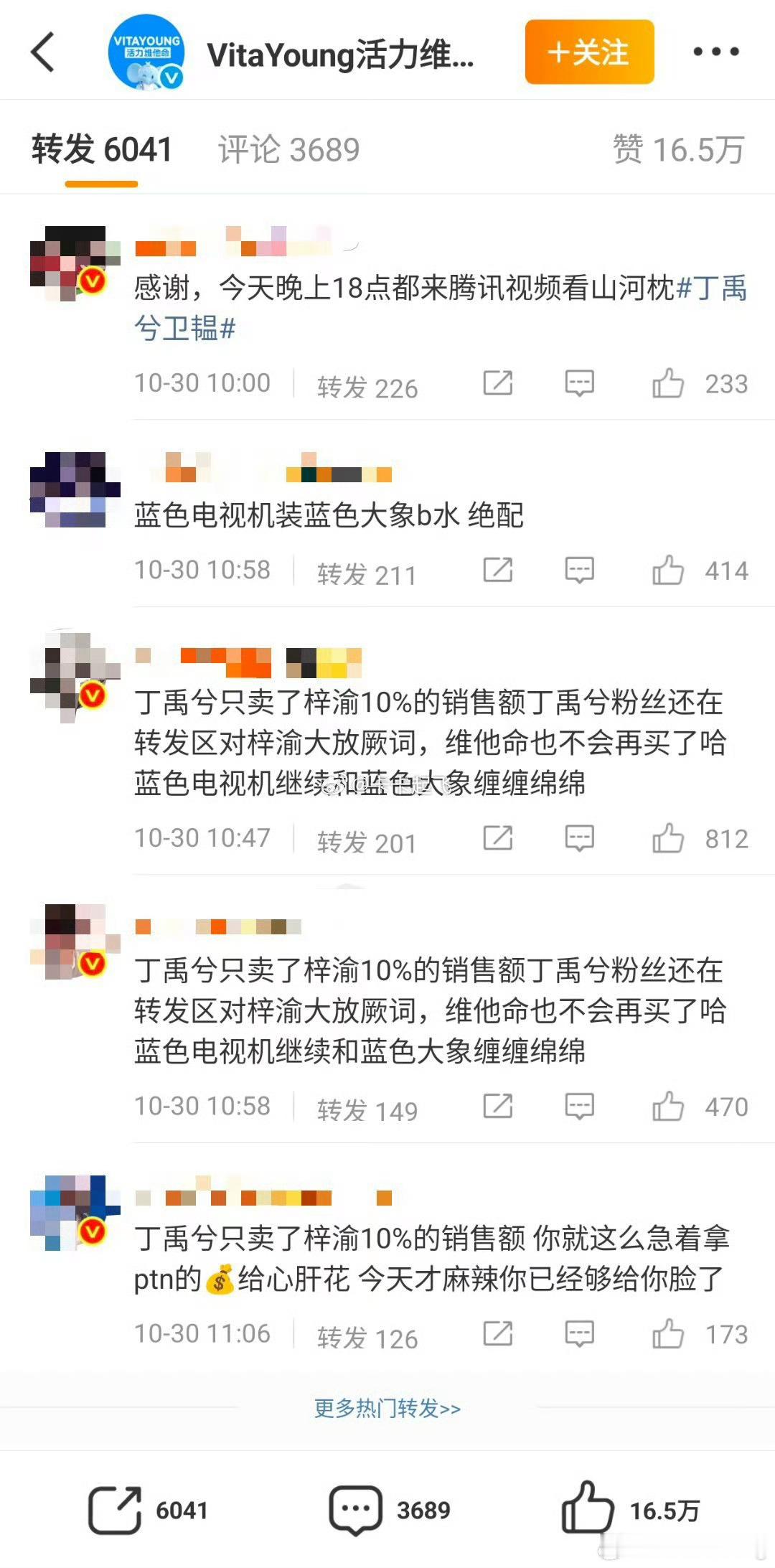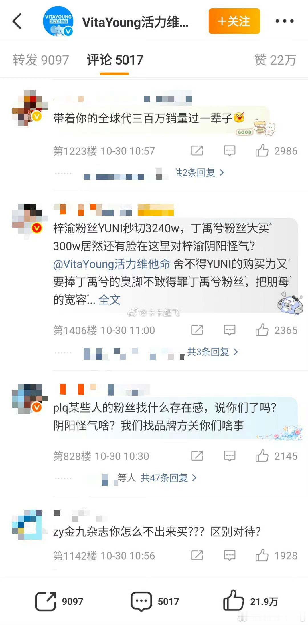 好离谱…梓渝粉丝去维他命评论区闹了…因为品牌给代言人丁禹兮的山河枕云包场7200