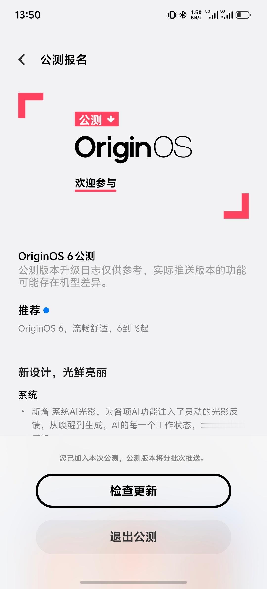 OriginOS6公测来了已给我的iQOO13报名坐等推送更新 6到飞起