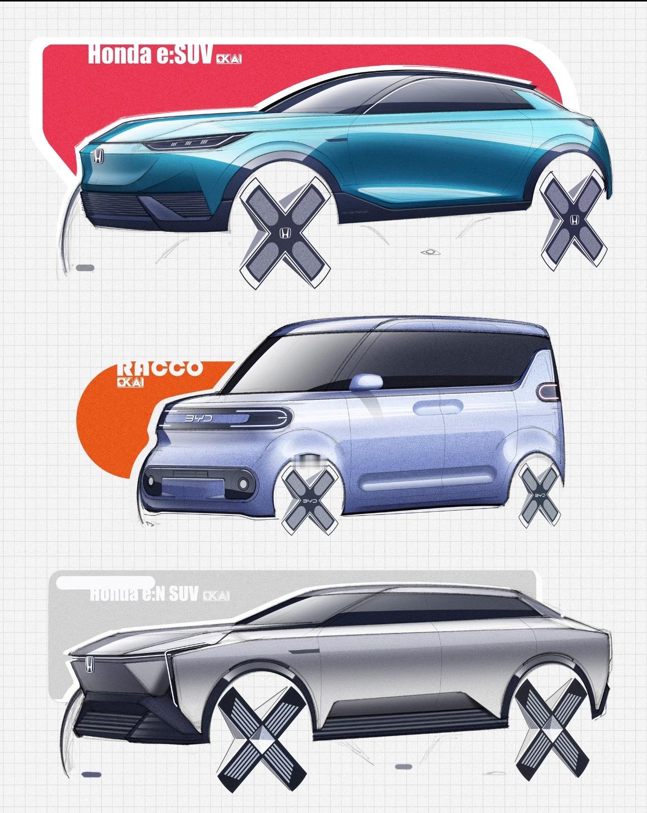 比亚迪RACCO设计师分享出来的手稿,好有趣带手稿,设计的是真好看啊[喵喵]