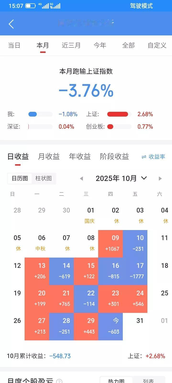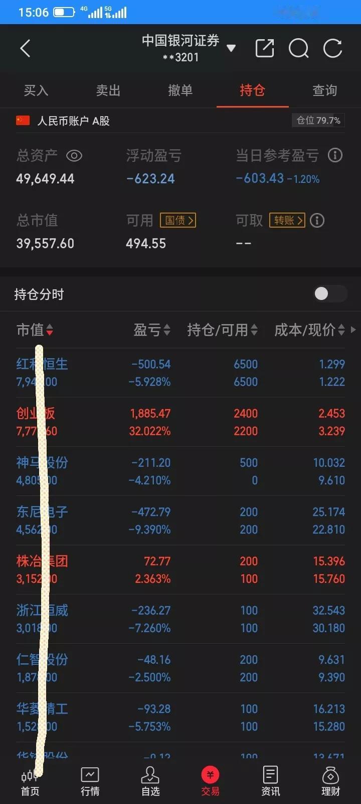 2025.10.30,今天上证指数再创新高,然后冲高回落,但是我持有的股票今天基本上全部大跌。又因为太贪心,赚钱舍不得卖,今天都下跌亏钱了,今天又清仓止损了3只股票,亏了200块钱,收盘新建仓2只股票。 今天国机低开低走,下跌中触发了止损单,以28.81清仓了100股,卖掉之后就反弹上涨了,又卖错了,前两天赚100多块舍不得卖,今天离场倒亏了100多块钱。 环旭也是差不多,下跌中以25.31清仓止损了100股,也是赚100多舍不得,今天离场倒亏了70块钱。卖掉之后下跌了几毛钱然后触底反弹,逐步上涨,还是卖错了。 今天联翔今天高开,向下砸了一下,然后又冲高回落,随指数下跌,最终还是下跌,持有4天了,还是不上涨,放弃幻想,收盘前以21.78清仓止损了100股,卖掉之后收盘还又上涨了一点点,可能又卖错了。可能明天会上涨了,昨天止损的雄韬也止损错了,今天逆市上涨,又错过了。 早上想对红利做个t,于是1.228买入1000股,上涨了一点点,没有及时卖,下午反而跌下来了,错了也及时认错,收盘前以1.221卖掉1000股,亏了7块钱。 想对株冶做个t,上午委托15.70买入100股,下午开盘一下子成交了,成交之后逐步上涨,最高冲到16.16,以为做对了,赚几十块钱,想赚更多一点,但是还是错了,逐步回落,收盘反而没有差价了。集合竞价还砸到更低,就不卖了,算加仓了。 早上看到国泰触底反弹,一波比一波高,于是以13.06买入100股,但是上涨了一点点,又下跌了,收盘反而亏钱,亏钱也t出去,错了也要认错,收盘以12.91卖掉100股,做t失败,多亏了15块钱。 上午看到神马逆市反弹上涨,决定做个t,于是委托9.54买入500股,下午成交了,继续下跌,还是买贵了,还好收盘拉起来了,有一点差价,于是收盘以9.61卖掉500股,赚30多块钱。降低一点成本。 华菱昨天上涨舍不得卖,今天低开低走,下跌中触发了止损单,以15.26止损卖掉100股,下午又跌到15.01。感觉这两天加仓又错了,昨天赚100多,还想赚更多,今天反而亏损100多,放弃幻想,错了及时止损,反弹的时候以15.24又卖掉100股,又亏了一百多块。 换个思路,收盘计划再新建仓3只股票,计划买入100股中钨,但是收盘拉高了1毛多,没有成交,没有买到。以6.02买入200股方大,以13.67买入100股华锋。希望这两只股票能够给我挽回一点损失吧。收盘以3.239加仓200股创业板。 今天做得多,也错得多,总体t了1000股红利,亏了7.2元,t了100股国泰,亏了16块钱,t了500股神马,赚34块钱,总体今天做t还是没有亏钱,清仓3只股票,亏了200块钱,新建仓2只股票,止损减仓200股华菱,加仓100股株冶。 今天总市值3.95万元,总资产4.96万元,今天总体账户大亏603元。把几天反弹的利润一天就又亏回去了。这个月回本无望了。上证指数 股大盘指数 股市指数 股票指数分析 收盘指数 指数拉抬