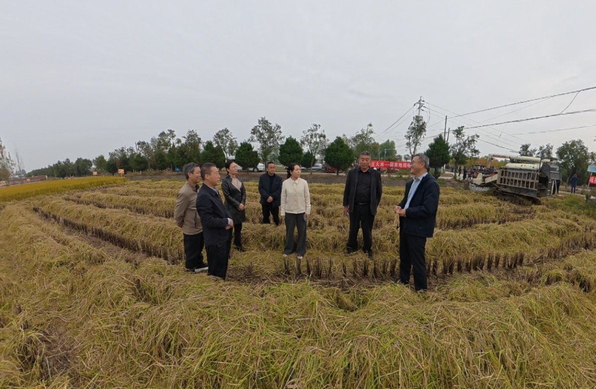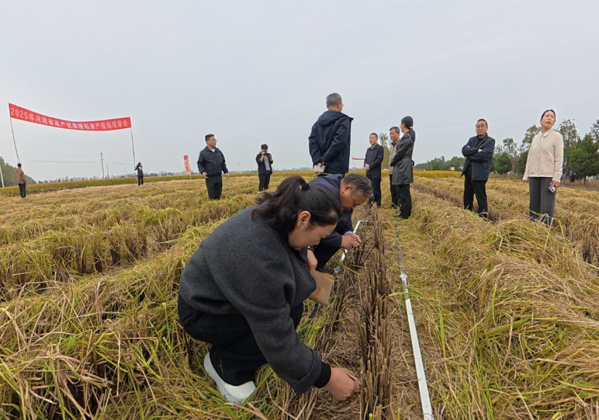 金秋十月,稻浪翻涌,豫南大地稻米飘香。2025年10月29日下午,确山县留庄镇大赵楼村稻田公园,河南省优质食味粳稻测产暨机收减损现场观摩会举行。南京农业大学教授田云录、湖北省农科院研究员程建平、江苏省农科院研究员李霞、河南省农科院研究员尹海庆、河南省种业发展中心研究员刘桂珍、河南农业大学教授李俊周等省内外水稻领域专家,确山县人民政府副县长刘冬梅等领导,以及确山县水稻种植经营主体、米业企业代表齐聚田间,共同见证国家地理标志产品“留庄大米”的又一次品质升级与产量突破。