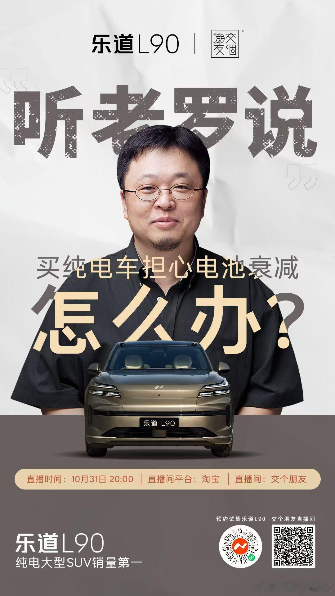 10月31日20:00,罗永浩“交个朋友”淘宝直播间抽乐道L90 Ultra版一年使用权?老罗还要分享,二三十万买车怎么选最超值!?这波跨界有点意思!