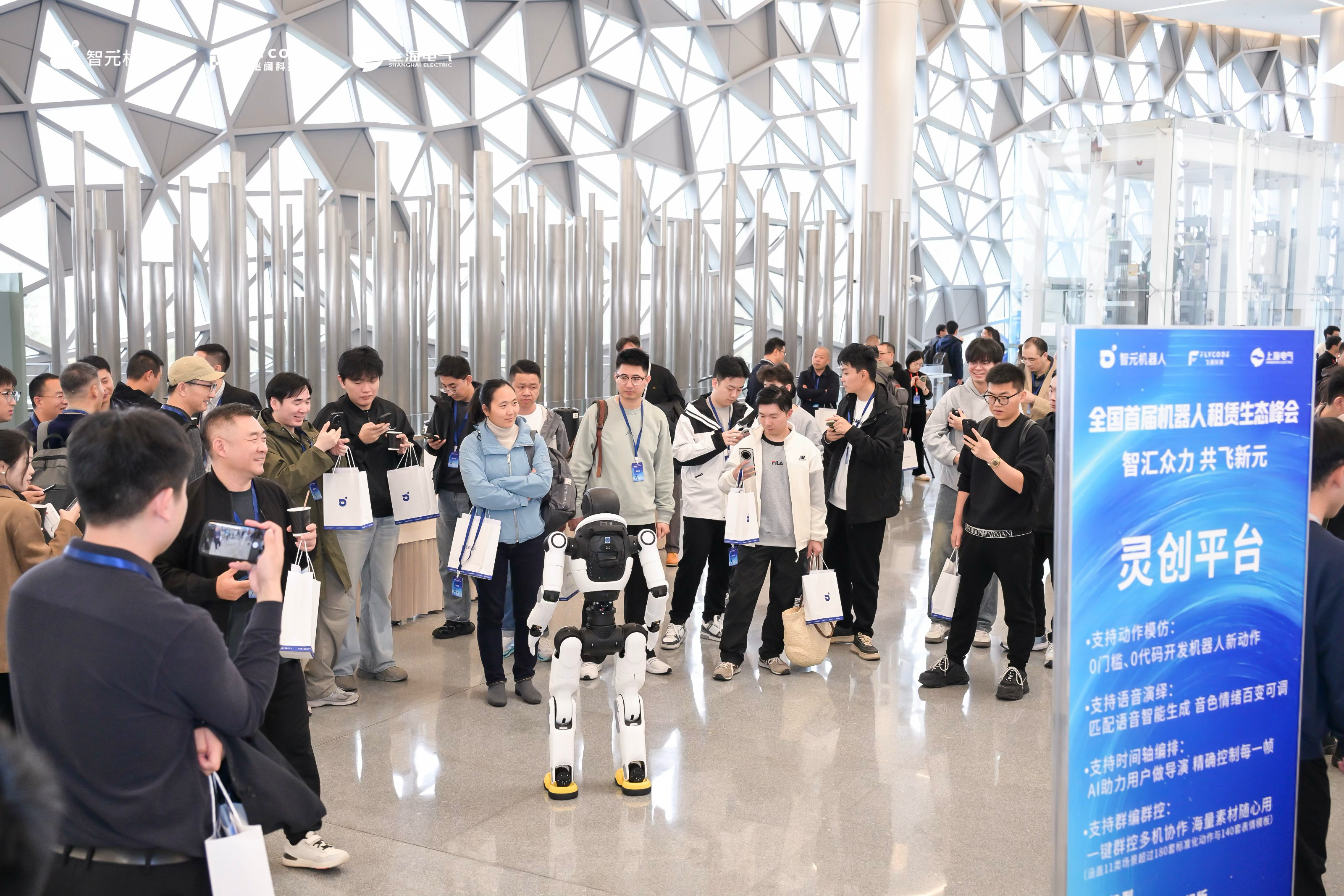 2025年10月30日,由智元机器人发起,联合杭州飞阔科技、上海电气金融集团共同主办的“全国首届机器人租赁生态峰会”在上海市圆满落幕。本次峰会以“智汇众力,共飞新元”为主题,聚焦机器人租赁产业的生态共建,通过“灵创平台”赋能租赁业务、成立智元机器人租赁生态联盟、发布全链扶持政策,推动行业向标准化、规模化转型,为代理商、开发商及终端用户打造多方共赢的新生态。