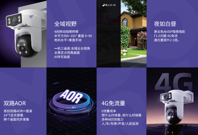 神眸双目枪球AOR电池云台机内置的神眸AI大模型支持端侧人形/车辆/车牌/人脸识别,双目联动技术可自动追踪人形和车辆,指哪打哪的智能云台控制系统,让用户通过手机点击屏幕任意位置即可调整监控视角。今年神眸用户最大增值点之一,神眸APP的AI管家神眸小智交互功能。自定义智能检测报告,自定义的视频追踪,智能摘要,高光时刻的视频AI配音配文案生成短视频,神眸“看得清看的久看得懂”超越了传统监控的防盗监察单一功能,更提供了情感链接的新赋能。