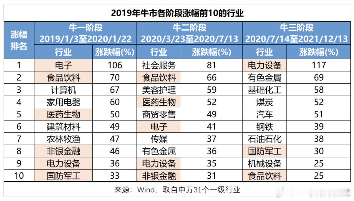 2019年牛市,核心资产成为主流审美。以茅王为代表的传统行业龙头在牛一、牛二领涨。原先跟涨的以宁王为首的新能源板块,由于渗透率快速提升,在牛三反超,实现领涨。在牛二阶段后,存在高切低现象。
