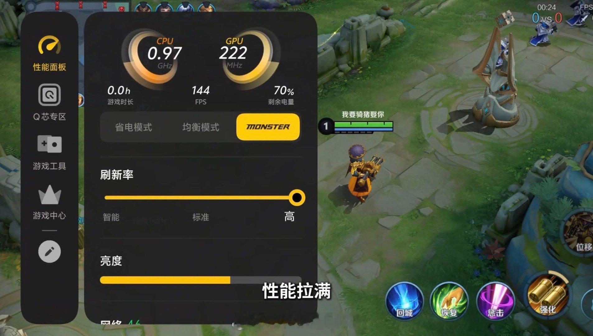 性能表现上直接拉满了好吧,什么骁龙 8 至尊版 + 自研 Q2 芯片,还有 iQOO 15 同款 Monster 超核引擎,王者直接给你144FPS 满帧跑,边充边玩都稳得一批