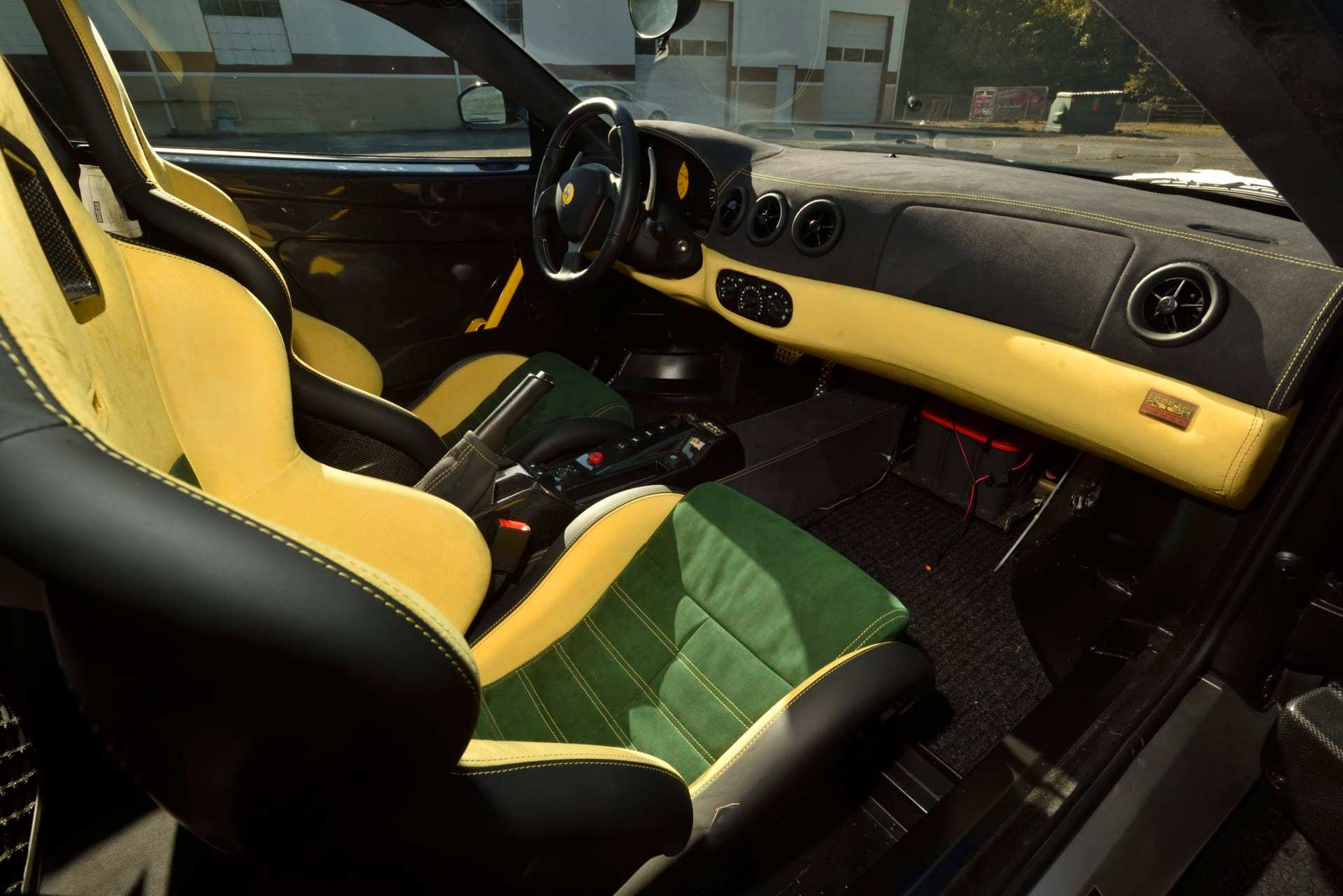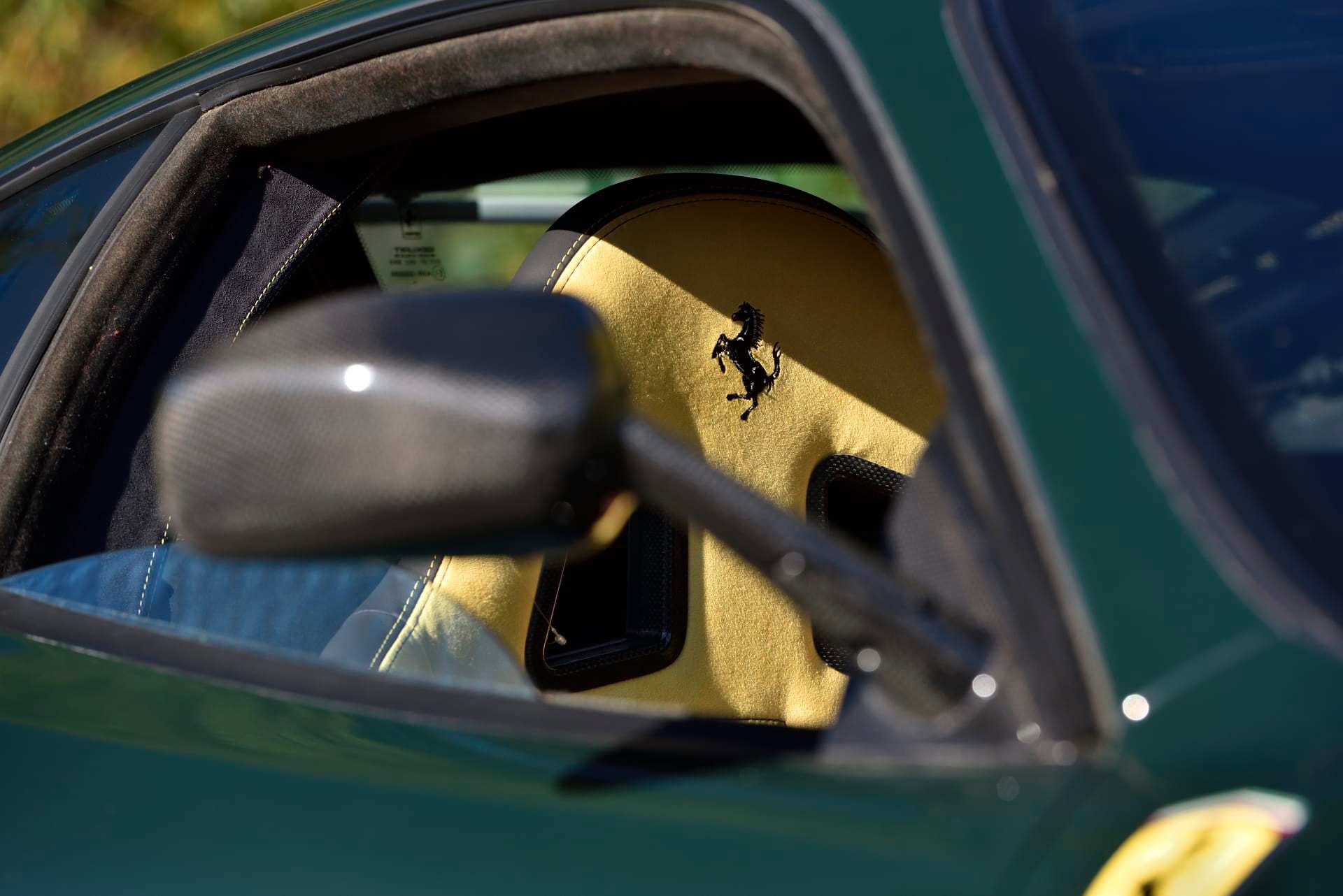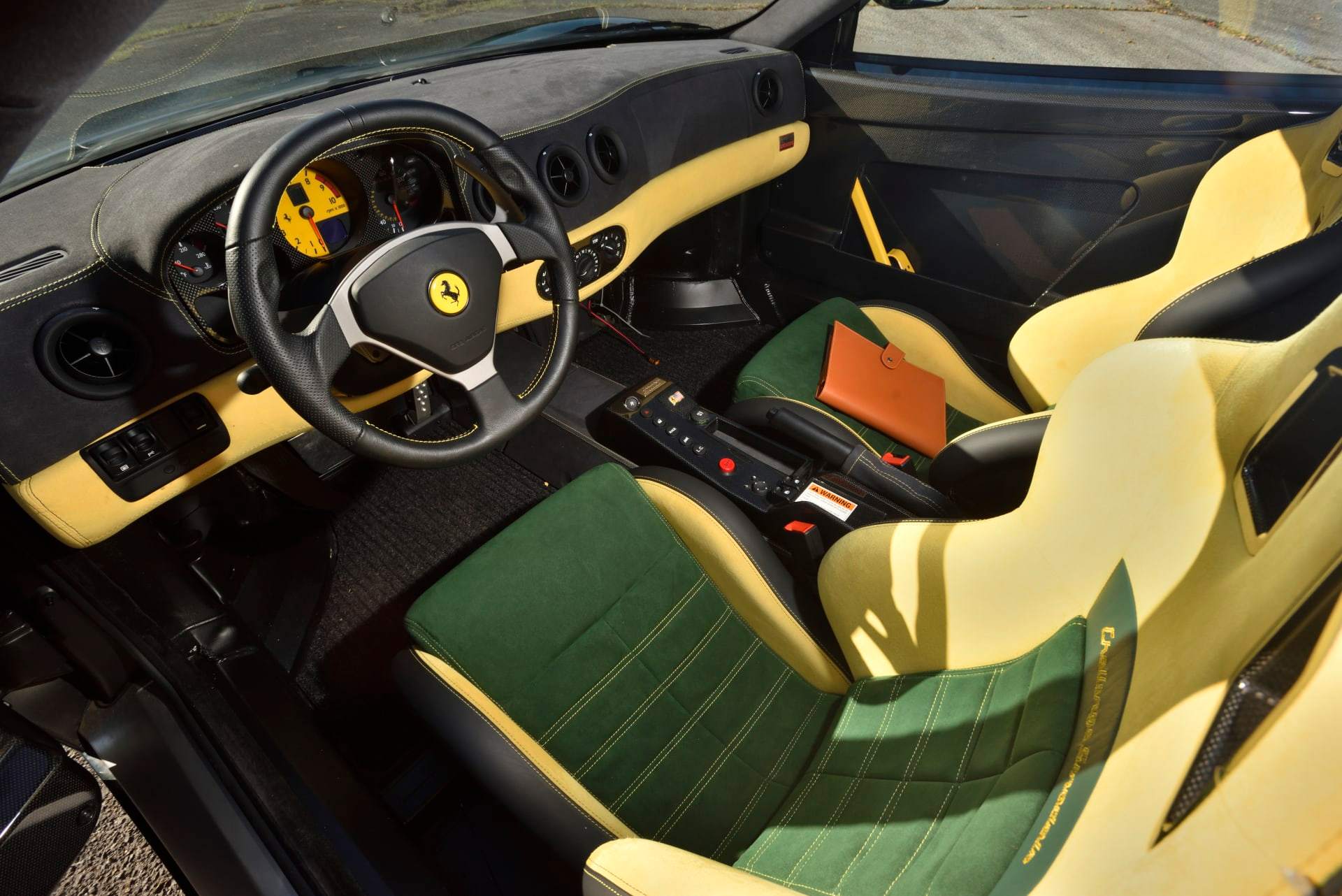 这辆绿色Challenge Stradale的一手车主并非Bachman,这就不难解释,为什么一批个性化定制黄色法拉利中,有一辆绿色的Challenge Stradale,Bachman入手后将这辆车的内饰从红黑双拼改为黄绿双拼,非常特别。
