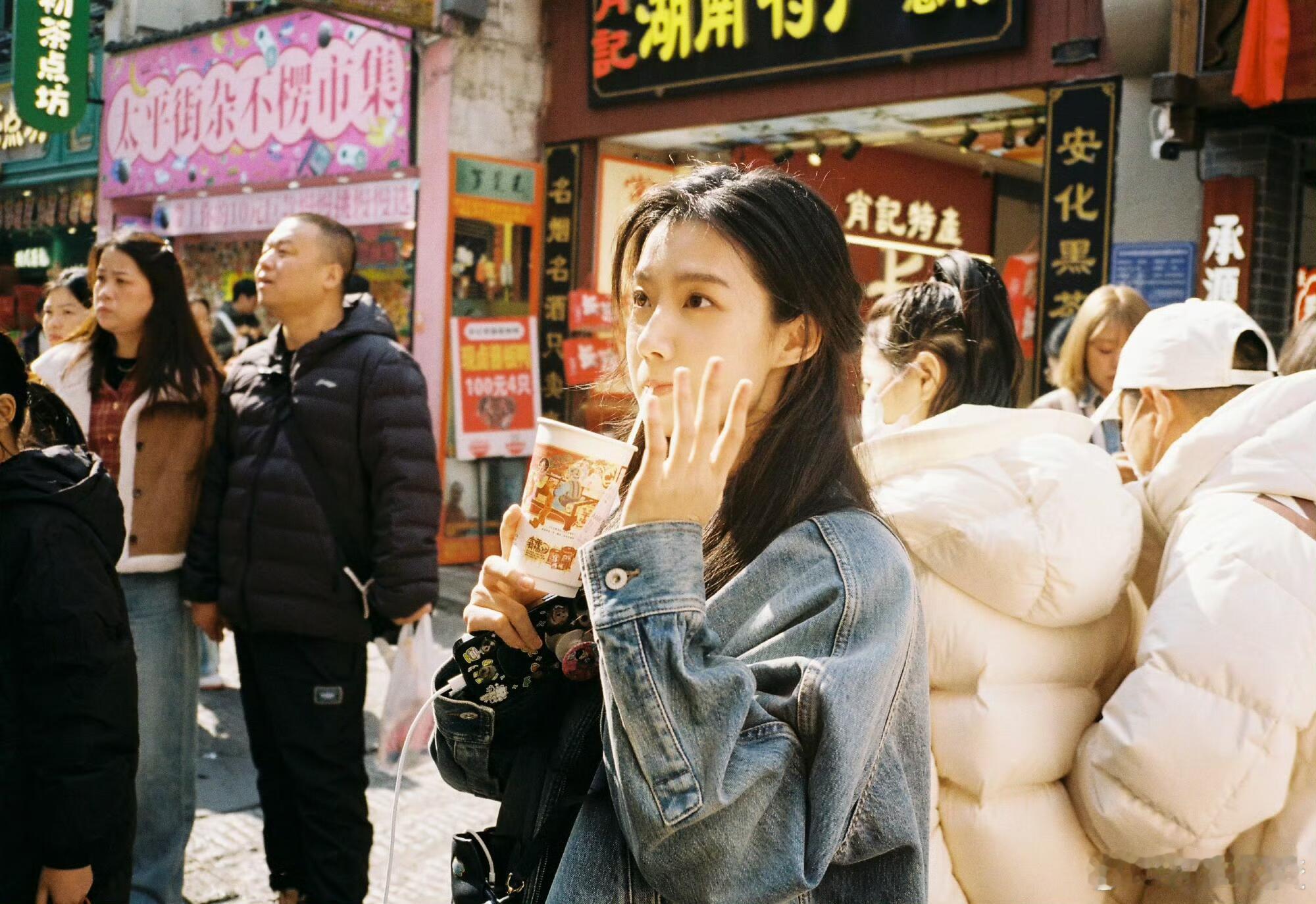 林允这身巴黎造型也太好看了吧!灰色大衣搭配蓝色牛仔衬衫,里面还有灰色内搭,整体色