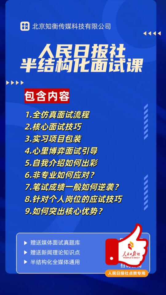 ✅人民日报社部分岗位二面通知已经发放,没收到的同学可以再等一等,也许会有补录机会。 🎈二面仍然是半结构化形式,会针对个人简历和岗位匹配度进行提问,二面比例为5:1。 🔥人民日报是所有媒体单位里推流程推的最快的单位之一,整体流程会在3月底之前全部走完。作为一家有编制有户口工资高,待遇好的媒体单位。值得所有同学在最后一关好好冲刺一把!加油💪💪